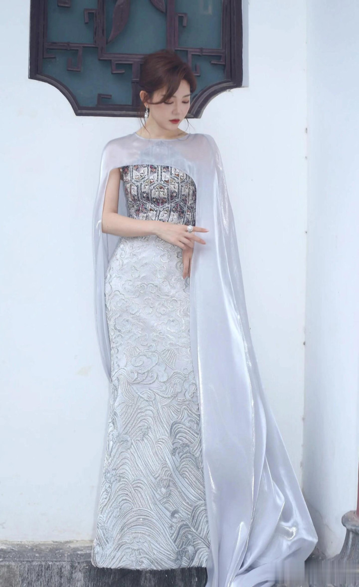 郭玮主持中国电影大数据荣誉之夜, 一袭银色紧身披肩礼服裙好美!